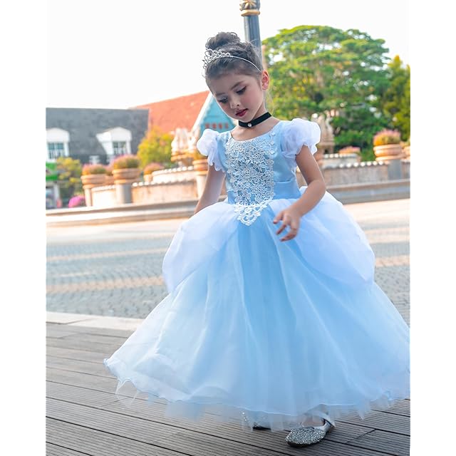 [TYHTYM] プリンセス ドレス キッズ(子供ドレス+ティアラ+ネックレス) 3点セット 100-140cm キッズコスチューム コスプレ ブルー ワンピース イベント ステージ衣装 変装 演出 仮装 クリスマス ハロウィン 誕生日 プレゼント(140)