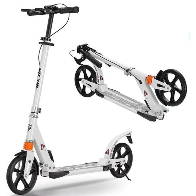 SFUN キックボード キックスクーター 20CMビッグタイヤ 折りたたみ式 4段階調整可能 子供/大人用 PL保険加入済み (ホワイト)