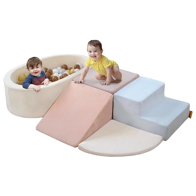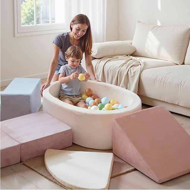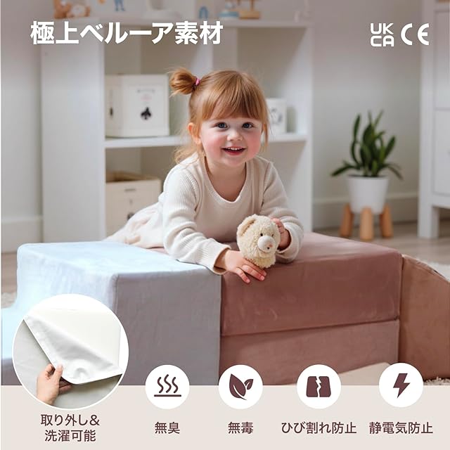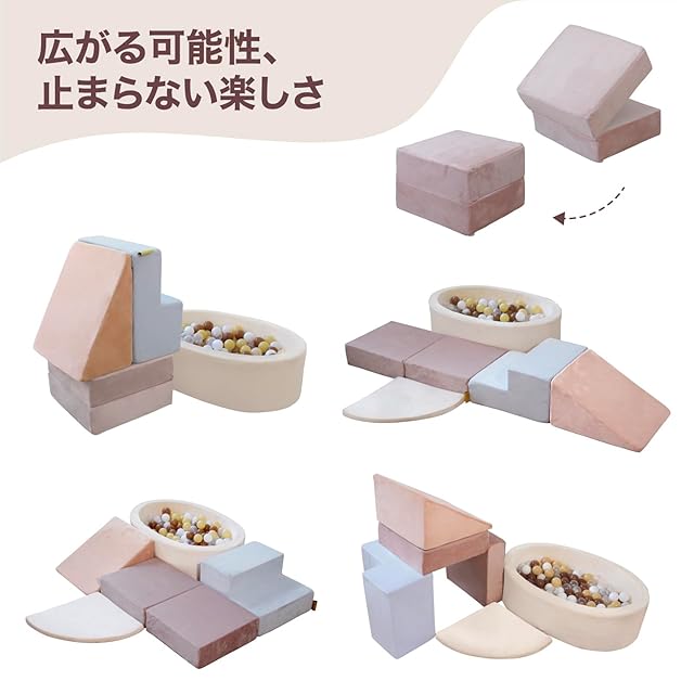 【自由に組み合わせ可能】このセットには6つのフォームクライミングブロックが含まれており、自由に組み合わせて登ったり、這ったり、滑ったり、積み上げたりといった多様な活動を楽しむことができます。子どもたちの運動能力や身体の協調性、創造的な遊びを育むのに役立ち、室内玩具としての大きな魅力となっています。
