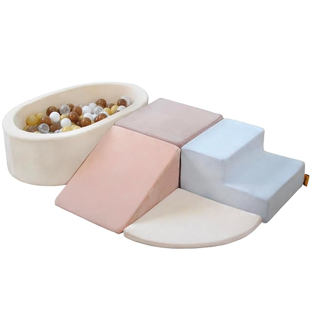 商品名:BanaSuper ふやせるアスレチックソフトブロック 幼児おもちゃ キッズスペース アクション・スポーツ 布製玩具 大型 室内遊具 子供用プール シーボールは含まれない (ブルーピンク、ブロック6個)
