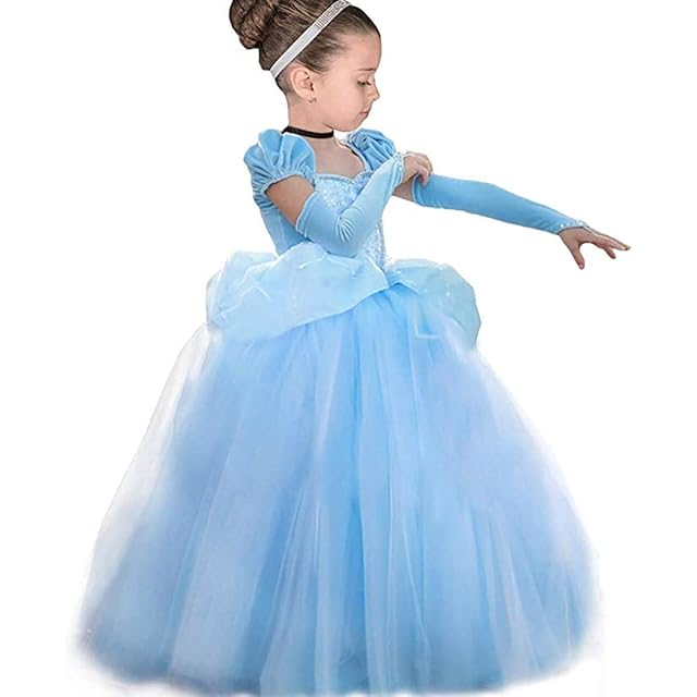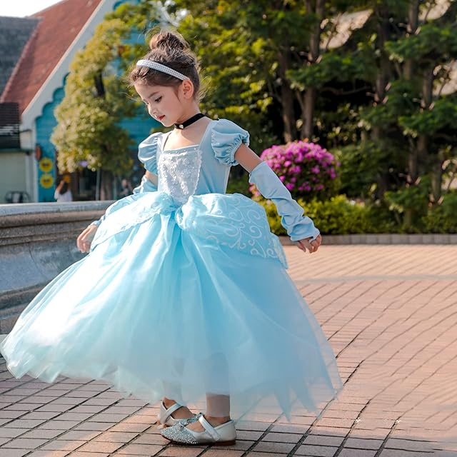 [TYHTYM] プリンセス ドレス キッズ (子供ドレス+アームカバー) 2点セット 100-140cm コスプレ 衣装 仮装 ふんわり ワンピース キッズコスチューム・変身・なりきり 誕生日/パーディー/七五三/記念撮影用/遊園地でも快適 (ブルー, 2-3Y)