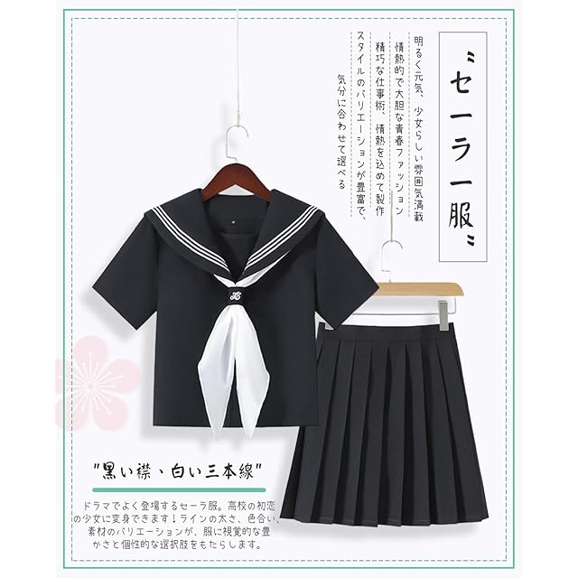 [NOKIJP] セーラー服 本格制服 スカーフVer.特集 jk コスプレ 半袖 長袖 大人 女子高生 制服 ランキング セーラー 服 コスチューム レディース 女装 ハロウィン 紺 黒 白 人気 セーラー服 コスプレ
