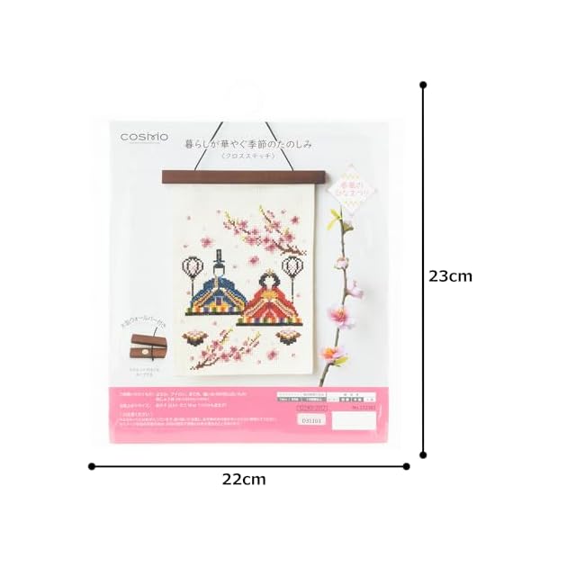 商品名:コスモ(Cosmo) 刺しゅうキット 【暮らしが華やぐ季節のたのしみ】 3月春風のひなまつり クロスステッチキット 22.5㎝×18㎝ No.522303