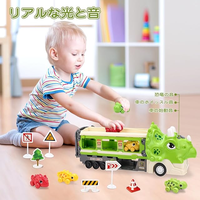 REMOKING 車おもちゃ 恐竜 おもちゃ 知育玩具 トラック 恐竜フィギュア カー 女の子 おもちゃ 男の子 玩具 男の子 子供のおもちゃ 贈り物 クリスマスプレゼント おもちゃ 男の子 女の子 人気