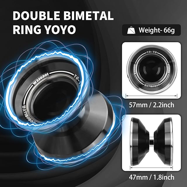 WATIEOBOO バイメタルヨーヨー 4 つのステンレススチールリング付き 大人の上級者向けプロ仕様の無反応ヨーヨー 驚異的なドライブ性能とアイドリング能力 (ブラック)
