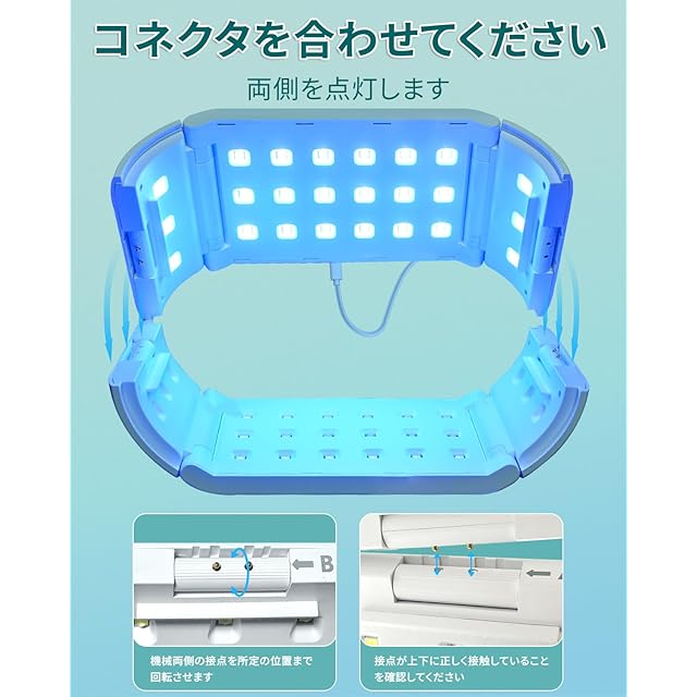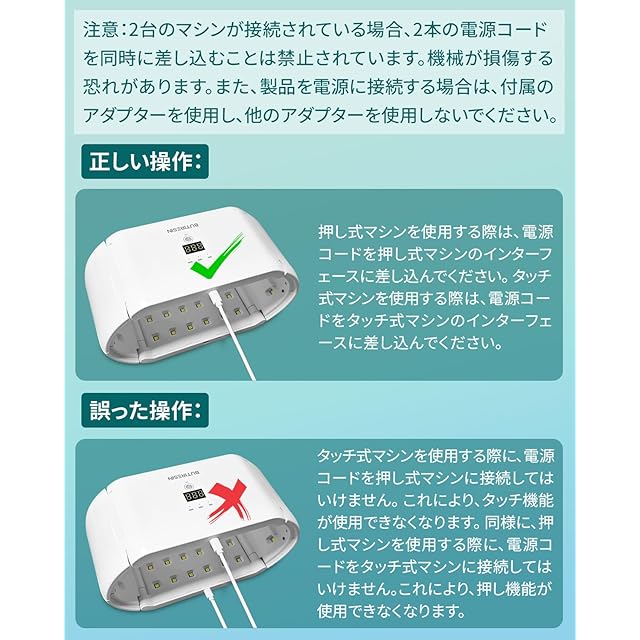 使用方法<br> <p>1.使用する前に、製品に付属しているアクセサリーを確認し、USB Type-Cを挿入し、対応する電源インターフェースに接続してください。</p><br> <p>2.両側のブラケットを開き、直射日光の当たらない水平な場所に製品を置き、UVレジンを準備してください。</p><br> <p> 3.UVレジンを適切な位置に配置し、ボタンを押すと、ライト60秒、180秒・または300秒間点灯します。</p><br> <p> 4.使用した後は、電源コードを抜き、ブラケットを収納し、ライトを安全な場所に保管してください。</p><br> 注意事項<br> <p>1.本製品を可燃性や爆発性の場所で使用することは厳しく禁じられています。</p><br> <p>2.製品を炭酸液体で拭かないようにし、チップの損傷や色あせを避けてください。 </p><br> <p>3.目の炎症を避けるため、長時間LEDライトの光を直接見ないでください。</p><br> <p>4.傷や破損を避けるため、直接手でLEDライトのビーズに触れないようにしてください。</p><br> <p>商品説明</p><br> <p>カラー:ホワイト</p> <p>重さ:570g </p> <p>効率:48W</p> <p>LEDライト:48個</p> <p>材料:PC+ABS</p> <p>サイズ:246*129*115 mm</p> <p>定格電圧:5V</p> <p>電源:USB Type-C ケーブル</p>