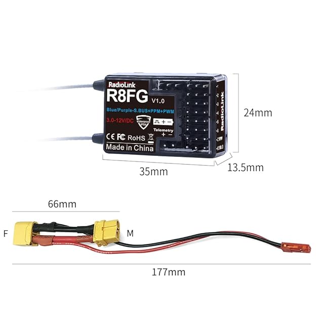 【RadioLink正規品】 (技適認定済シール有) 【 R8FG 】 ラジコンカー用プロポ (RC4GS / RC6GS / RC8X) RadioLink送信機用レシーバー 2.4GHz 防水 IPX4 テレメトリ機能付 型番 技適認定済 テレメトリケーブル 同梱 プロポ用アクセサリ ・ リモコン用アクセサリ ・ リモートコントローラー用アクセサリ