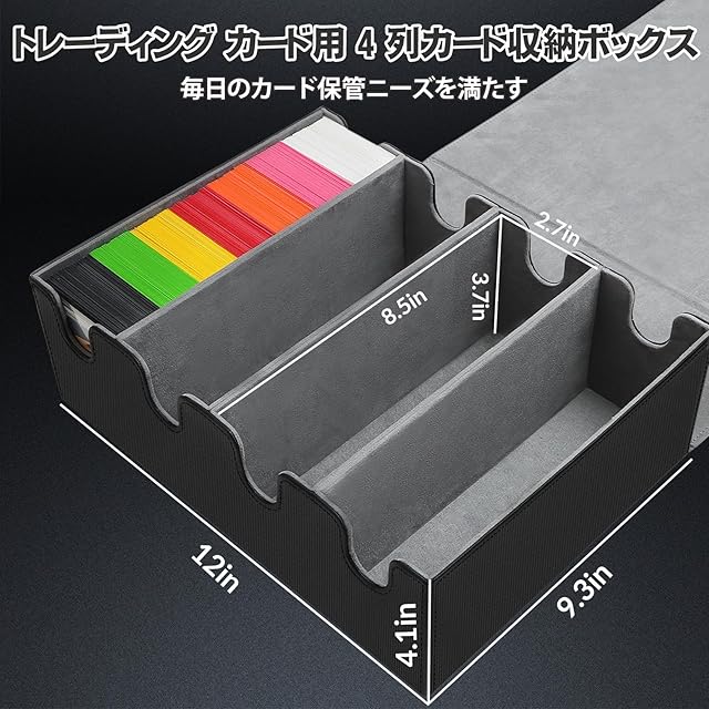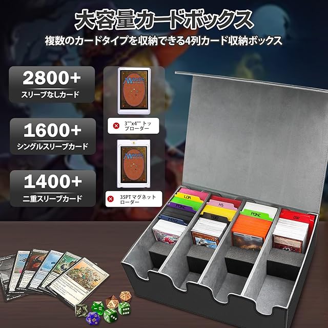 商品名:HIMOMO デッキケース 大容量 2800+枚以上のストレージボックス トレカ PU レザー 10つの仕切り付きスポンジ4個付属 TCG、MTG、PTCG、野球カード用 黒灰 年賀 正月 新年の贈り物 クリスマスプレゼント