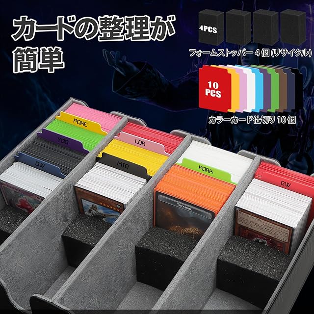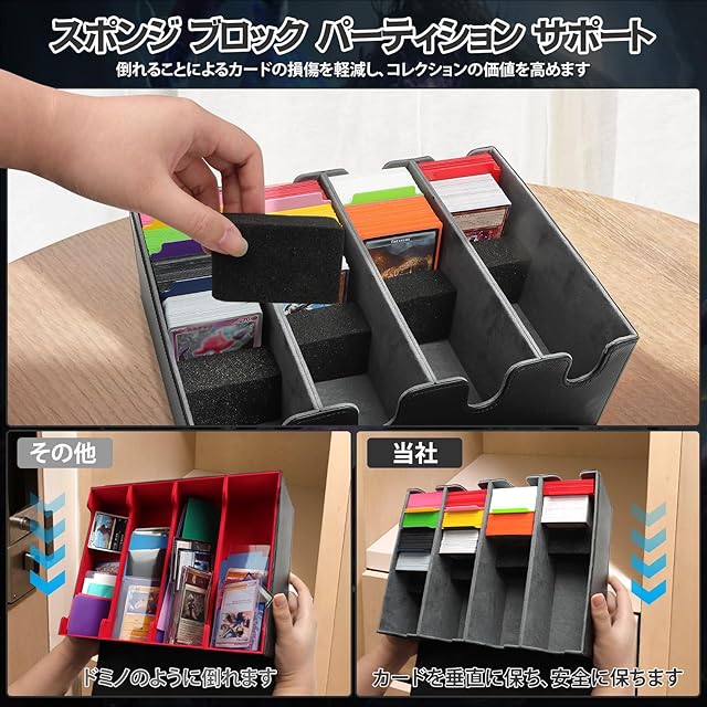 【大容量カードストレージ】2800枚以上の標準サイズの取引カードを簡単に保存することができます(具体的な数量はカードの種類と用途によって異なります)。10つの仕切り付きスポンジ4個付属 。トップローディングフェラルには適していません。