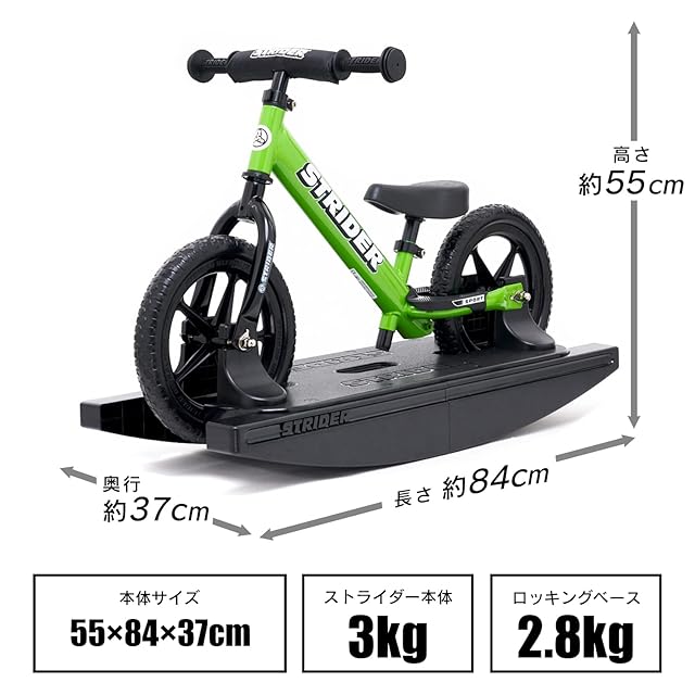 説明:ストライダースポーツモデルとロッキングベースのセット商品です。お子様の成長に合わせてロッキングベースを外すと、ストライダーとしてご利用いただけます。