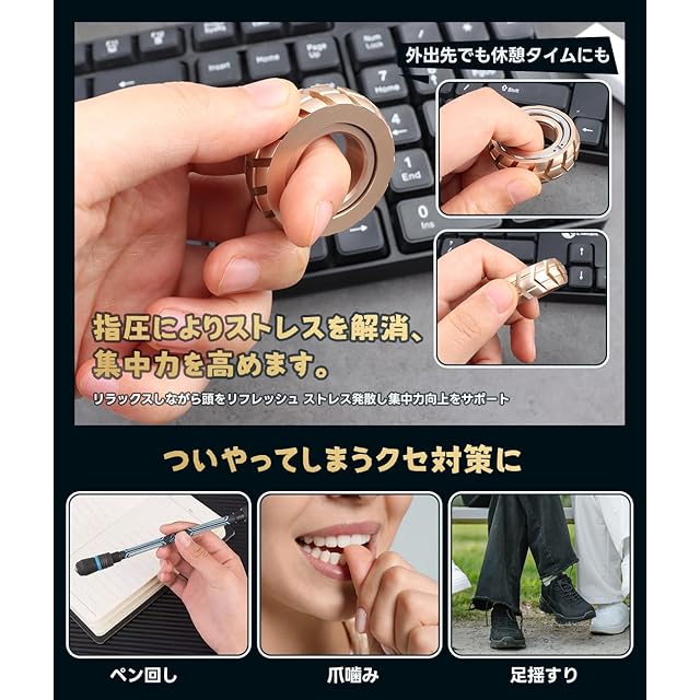商品名:フィジェットスライダー フィジェット フィジェットトイ 指輪 おもちゃ 暇つぶしストレス発散グッズ 大人 デスクおもちゃ ギフト ストレス解消 クリスマス プレゼント アルミ ゴールド (ゴールド)