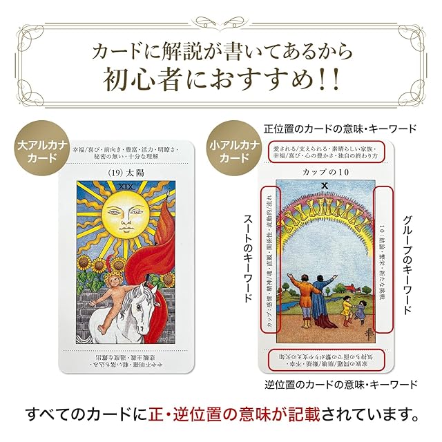 ✅【初心者にやさしい】全てのカードに日本語の意味が記載されているため、これからタロットを始める方には得におすすめです。