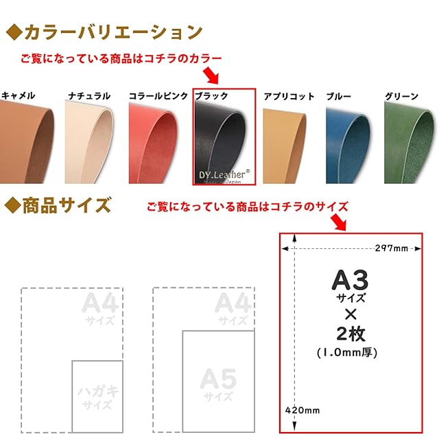 商品名:DY.Leather ヌメ革【 A3×2 ブラック 1.0mm 革質7 】 日本製 タンニンなめし レザークラフトパーツ 革 牛本革 生地 牛革 はぎれ 生成り 革手芸 革細工 初心者 漉き加工 天然皮革