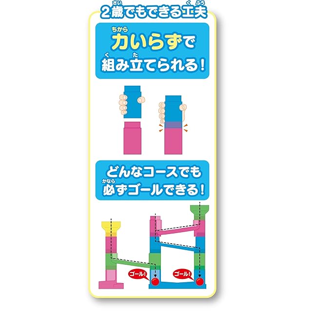 一番下をゴール兼支柱パーツにすることで、どんなコースに組んでも必ずゴールできるようになっています。