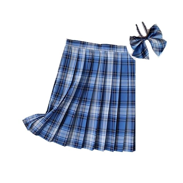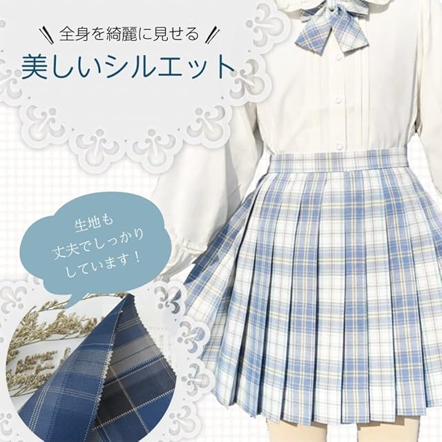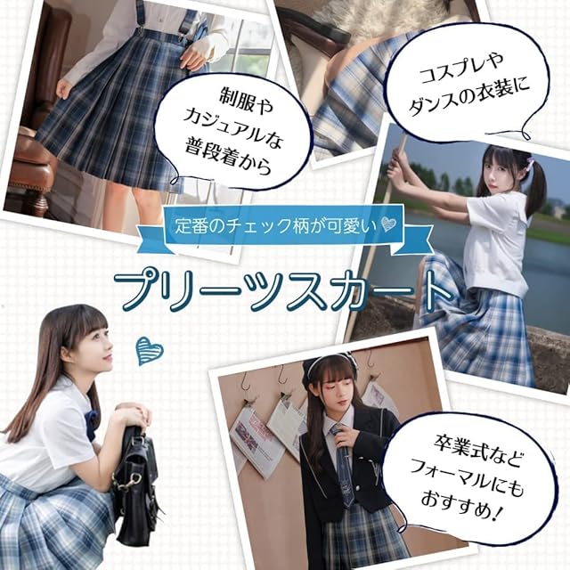 [Vasarhely] XS-4XL 制服 スカートプリーツスカート チェックスカート リボン付き スクールスカートコスプレ 女子高生 JK 高校生 ショートスカート 可愛い 大きいサイズ 制服 学園祭 文化祭 遊園地(S 色2)
