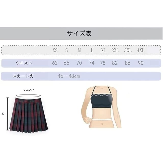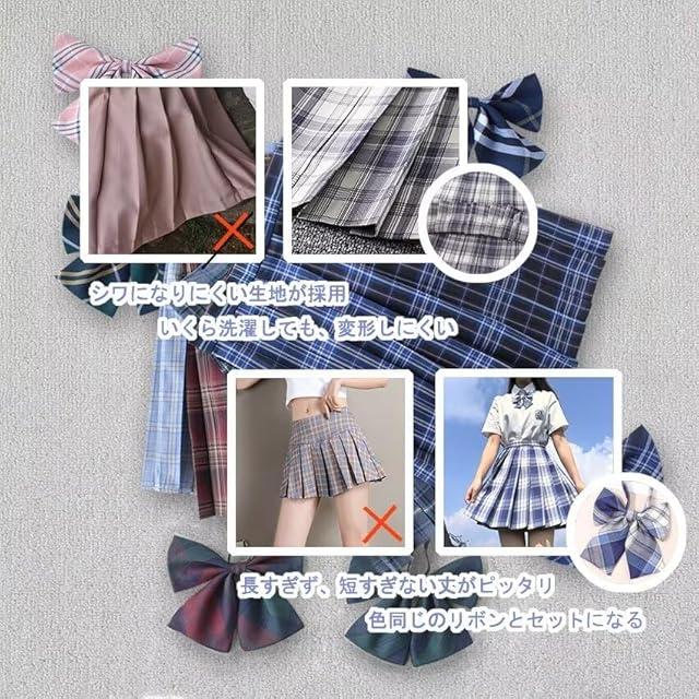 商品名:[Vasarhely] XS-4XL 制服 スカートプリーツスカート チェックスカート リボン付き スクールスカートコスプレ 女子高生 JK 高校生 ショートスカート 可愛い 大きいサイズ 制服 学園祭 文化祭 遊園地(S 色2)