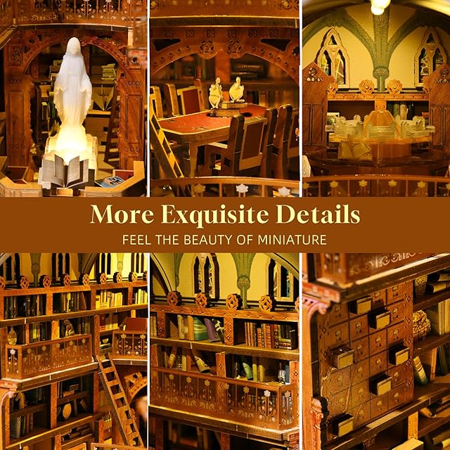 【おもしろDIY体験工作木製パズル】このDIY BookNook 600+ 個のパーツが含まれており,あなた自身の組み立てを待っています。初心者の方、10代の方でも、付属の詳細マニュアルにも段階的な手順が記載されています。したがって、各ステップを簡単に完了できます。これですドールハウス キット十代の若者と14歳以上の大人に適しています。デザインにインスピレーションを与えるだけでなく、そしてそれはあなたにとって素晴らしいチャンスでもあります。家族や友達と交流しながら、ものづくりの楽しさや達成感を味わいましょう