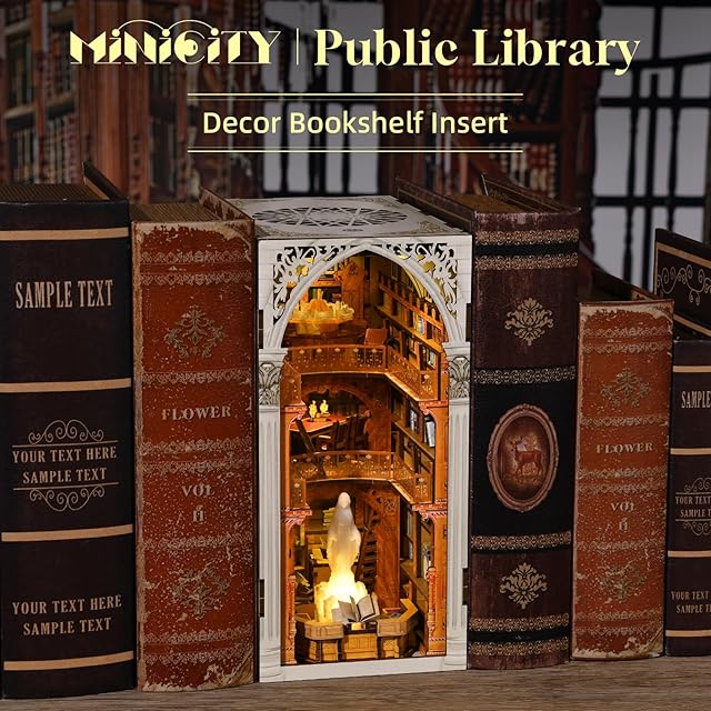 MiniCity DIY ブックヌック キット-ドールハウス キット-ミニチュア ハウス キット-BookNook- 適用対象 初心者 ティーンエイジャー 大人向け 誕生日プレゼント 装飾 コレクション アートワーク LEDライト付き (公共図書館)