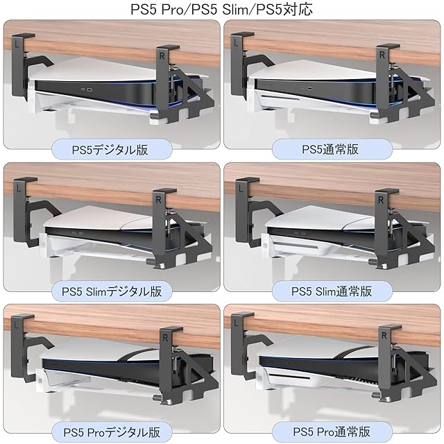 【PS5 Pro/PS5 Slim/PS5対応】PS5デスク下ホルダー PS5横置きスタンド デスク下 収納 穴あけ不要 プレステ5 マウント PS5周辺機器 省スペース 放熱改善 転倒防止 新型PS5スタンド PS5/PS5 スリム 通常版とデジタル版両対応