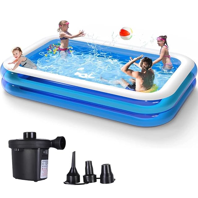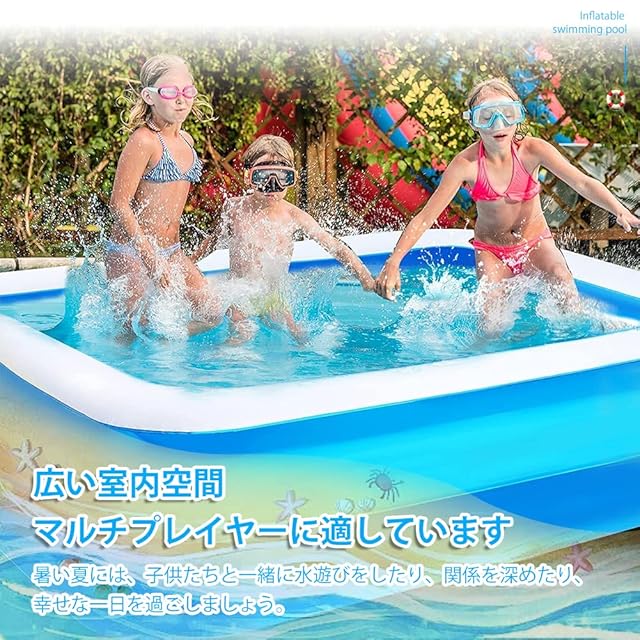 家庭用ファミリープール 262×175×50cm 電動空気入れ付き 子供 室内プール 庭 屋外 水遊び 夏のウォーターパーティー 簡単設置 大容量 2気室 滑り止め 耐熱 傷つきにくい 摩擦に強い 厚みがある 折りたたみ式 高温 夏 屋内 屋外 熱対策 水遊び
