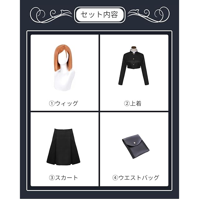 【<strong>商品詳細</strong>】<br><br>◆キャラ:釘崎 野薔薇<br><br>◆セット:「ウィッグ」+「上着」+「スカート」+「ウエストバッグ」<br><br>◆サイズについて:手作りの為、若干の誤差が生じる可能性がございます。 1~3cmの誤差はご容赦下さいませ。<br><br>【<strong>注意事項</strong>】<br>当店のコスプレ衣装はご注文していただいてたら海外の専門工場にて製作いたします。<br>そのため数日の生産時間がかかりますが、ご理解いただけますようお願いいたします。<br>商品画像は明るさや光の反射、ご利用のパソコンやスマホ等により実物と色合いが変わって見えることがございますが、ご了承ください。