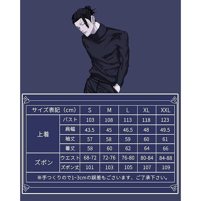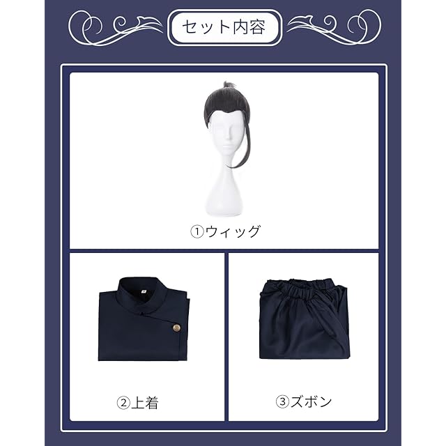 【<strong>商品詳細</strong>】<br><br>◆キャラ:夏油傑<br><br>◆セット:「ウィッグ」+「上着」+「ズボン」<br><br>◆サイズについて:手作りの為、若干の誤差が生じる可能性がございます。 1~3cmの誤差はご容赦下さいませ。<br><br>【<strong>注意事項</strong>】<br>当店のコスプレ衣装はご注文していただいてたら海外の専門工場にて製作いたします。<br>そのため数日の生産時間がかかりますが、ご理解いただけますようお願いいたします。<br>商品画像は明るさや光の反射、ご利用のパソコンやスマホ等により実物と色合いが変わって見えることがございますが、ご了承ください。