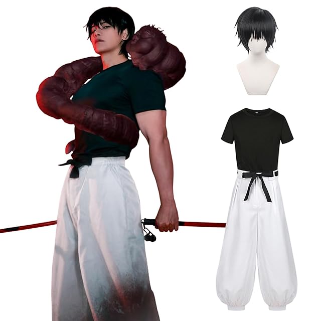 [神併良品] 伏黒 甚 爾 コスプレ ウィッグ付き 術師殺し 呪術廻戦 コスプレ衣装 フルセット コスチューム 大人用 仮装 文化祭 Fushiguro Tōji cosplay (伏黒 甚 爾 ウィッグ付き,L)