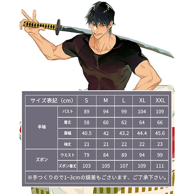 【<strong>商品詳細</strong>】<br><br>◆キャラ:伏黒 甚 爾<br><br>◆セット:「ウィッグ」+「半袖」+「ズボン」<br><br>◆サイズについて:手作りの為、若干の誤差が生じる可能性がございます。 1~3cmの誤差はご容赦下さいませ。<br><br>【<strong>注意事項</strong>】<br>当店のコスプレ衣装はご注文していただいてたら海外の専門工場にて製作いたします。<br>そのため数日の生産時間がかかりますが、ご理解いただけますようお願いいたします。<br>商品画像は明るさや光の反射、ご利用のパソコンやスマホ等により実物と色合いが変わって見えることがございますが、ご了承ください。