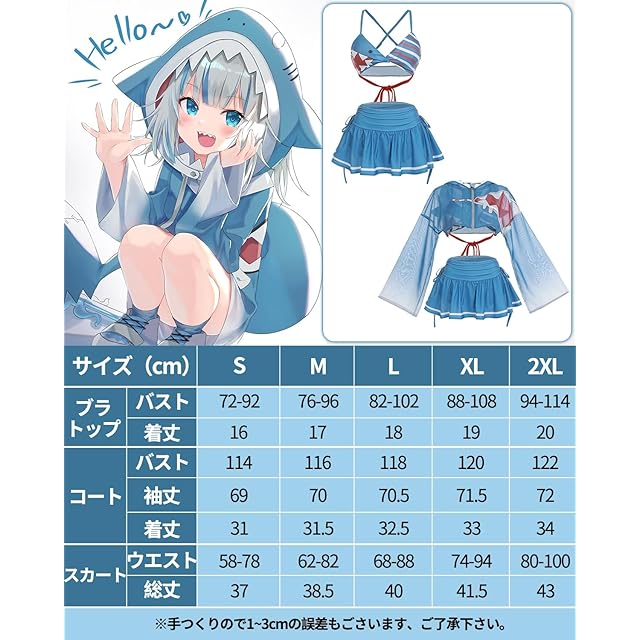 ※【登場キャラ】:大人気のVTuber「がうる・ぐら」の水着コスプレ衣装セットです。ちょっと違う感覚でコスプレを楽しめて、様々なイベントに活躍します!サメちゃんが大好きな方におすすめ!
