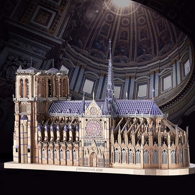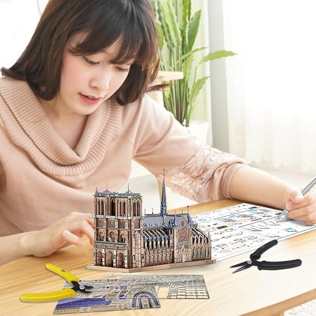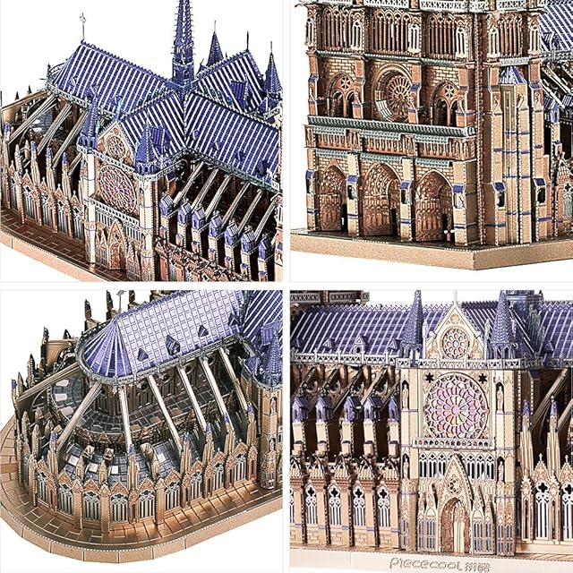 Piececool立体メタパズル:ノートルダム大聖堂(工具含め)、高難度、パズル数:382枚、根気必要