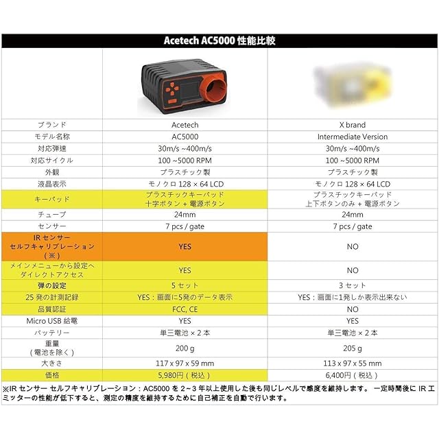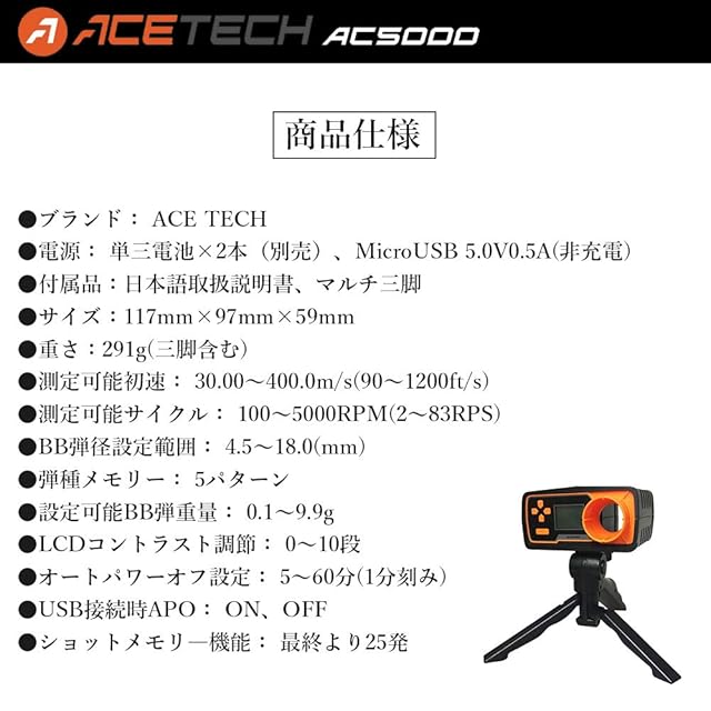 商品名:ACETECH AC5000 弾速計 初速計 三脚 自動計算 センサー 自己診断 メモリー 計測器