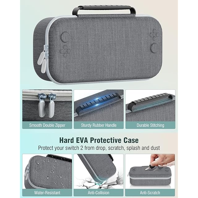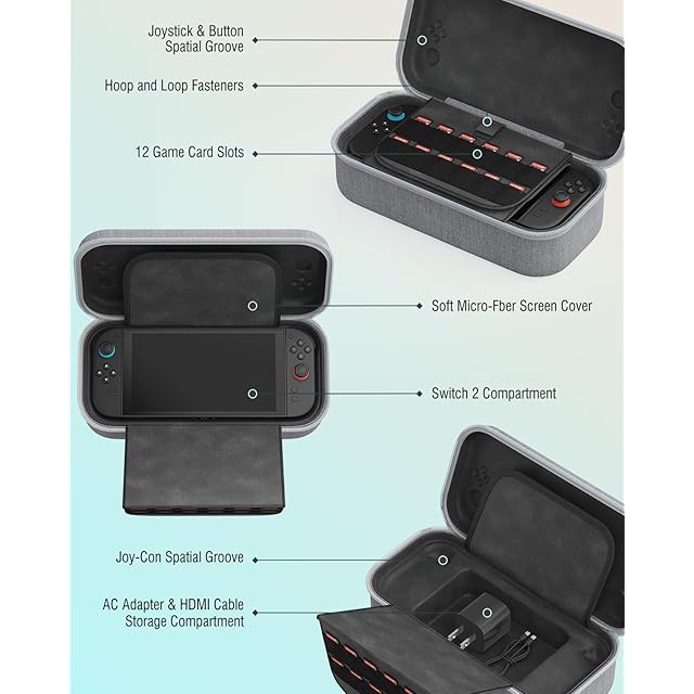便利なダブルジッパーデザイン: 開閉がスムーズなダブルジッパーデザインで、片手で簡単に開閉できます。 さらに、内部のベルクロ留めデザインにより、Switch 2をしっかりと固定します。