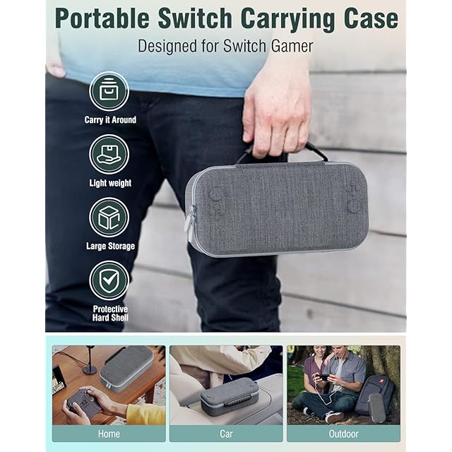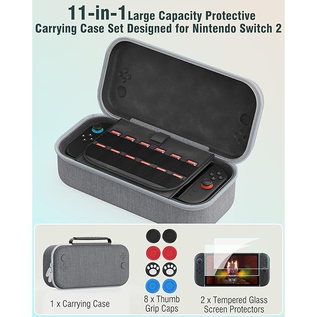OLCLSS Switch 2対応キャリングケース 8つのロッカーシリコンキャップと2つの10H硬質強化メンブレン付き 最大12枚のゲームカード/ケーブル/ヘッドセットなどを収納可能。 防塵、防水、耐衝撃、持ち運びに便利(チャコールグレー)