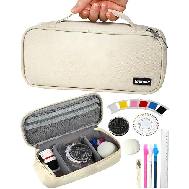 RiTaLT 裁縫セット(裁ちばさみ無し) ソーイングセット 大人 小学生 女の子 男の子 小学校 裁縫道具セット (アイボリー)