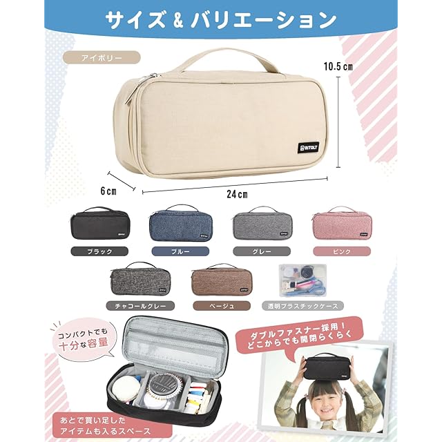 ✅【こだわりのポイント!】❶コンパクト設計だから持ち運びに便利 ❷飽きのこないシンプルなデザイン ❸クリアケース&仕切り付きだから整理整頓ラクラク