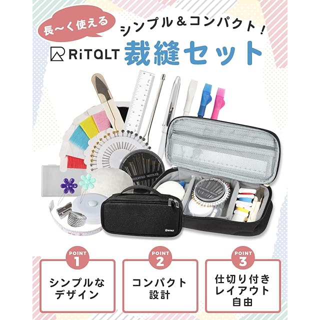 ✅【長ーく使える裁縫セット!】シンプルなデザイン&コンパクト設計!小学生から大人までずっと使える裁縫セットです。旅行用ポーチやガジェットポーチとしても◎\(^^)/