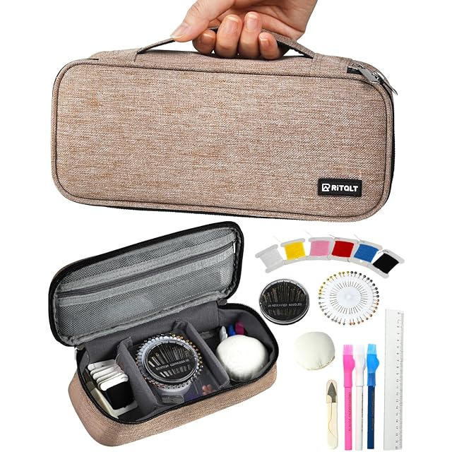RiTaLT 裁縫セット(裁ちばさみ無し) ソーイングセット 大人 小学生 女の子 男の子 小学校 裁縫道具セット (ベージュ)