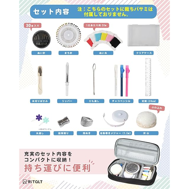 商品名:RiTaLT 裁縫セット (裁ちばさみ無し) 小学生 女の子 男の子 小学校 ソーイングセット 大人 裁縫道具 (ブラック)