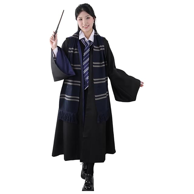 [COSSA]ハリポタ ハリー/ポッター ローブ コスプレ 大人用 男女共用 魔法 ハロウイーン コスプレ衣装 セット cosplay 誕生日 プレゼントコスチューム ハロウイーン パーティー 変装 仮装 文化祭 漫遊展 (青,L)
