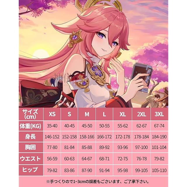 商品名:[神併良品] 八重神子 コスプレ ウィッグ付き 鳴神大社 原神 コスプレ衣装 大人用 仮装 文化祭 イベント コスチューム ステージ服 Yae Miko cosplay (八重神子 ウィッグ付き, 3XL)