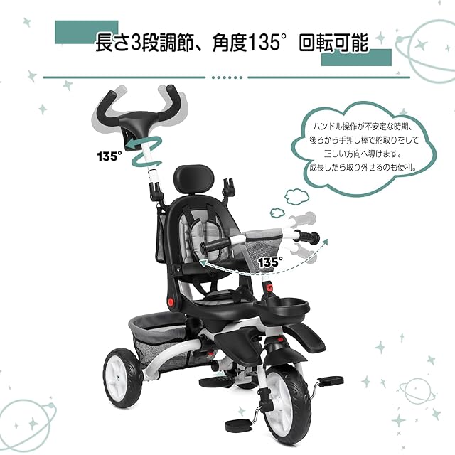 商品名:Thinkmax 子供三輪車 ベビーカー 5in1 折りたたみ 舵取り機能 乗用玩具 超軽量 乗り物 組み立て簡単 1~5歳 出産祝い ブラック