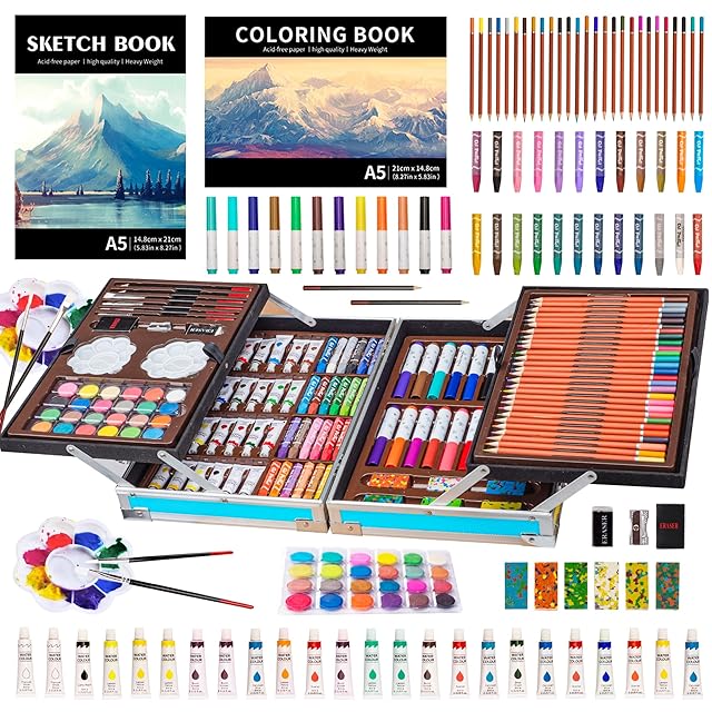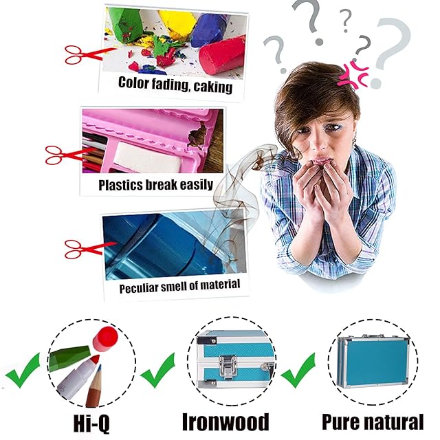 ★【間違いなくヒット】環境に優しい素材を使用しており、非毒性、ASTM 963に準拠しています。 画材はすべてアルミ製スーツケースに入っており、見た目も可愛くて、手触りもいいです。 ケースを簡単に開いて画材を展示できます。アームは、もっとアートセットのピースが入った内側の高さまで伸びます。 新進のアーティスト、男の子、女の子、ティーン、子供、孫、甥姪、5歳から12歳までの誕生日、休日、学校、クリスマスプレゼント、自分への贈り物として、遊びながらリラックスできます。