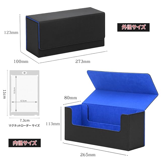 【サイズ&大容量】デッキケース外径サイズ273x100x123mm、内径サイズ265x80x113mm、最大36枚のマグネットローダを収納。複数の色の選択があります:外黒内赤、外黒内灰、外黒内青。