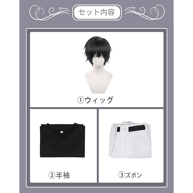 ※【セット内容】:「ウィッグ」+「半袖」+「ズボン」。ポリエステルな生地を使用し,質感や細部も丁寧につくられておりますので,本格的な着こなしが可能です。
