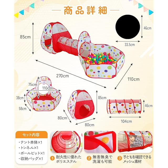 ✅【安心安全の遊び空間! 】当社の子供用遊びテントは、高品質のオックスフォード生地を使用しており、耐久性に優れ、裂けにくく非毒性で無臭。お子様が安全に楽しめるように、細心の注意を払い設計されています。