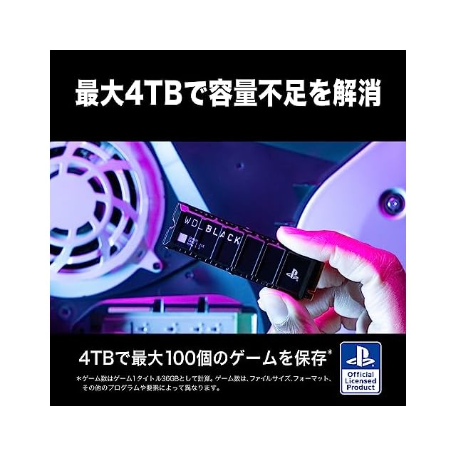 PlayStation 5コンソール[1]用の公式ライセンスM.2 SSD。 取り付け簡単だから安心して遊べます。 [1]PlayStation 5ファームウェアの互換性については、WD_BLACK 製品ページをご覧ください。