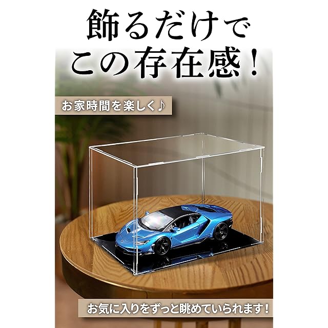 【透明度の高いアクリルを採用】ガラスに近い透明度があり、ガラスより軽くて割れにくくて安全なアクリル製。天井 側面 透明アクリル、台座 黒アクリル。360度から展示品を眺めて楽しむことができます。