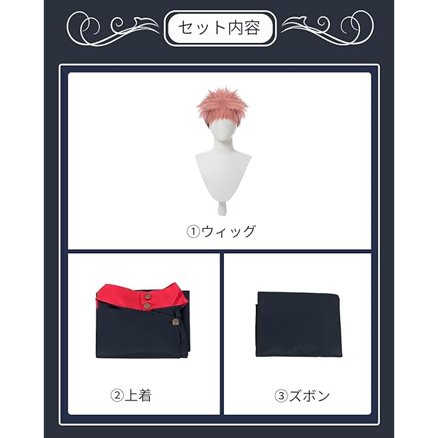 【<strong>商品詳細</strong>】<br><br>◆キャラ:虎杖悠仁<br><br>◆セット:「ウィッグ」+「上着」+「ズボン」<br><br>◆サイズについて:手作りの為、若干の誤差が生じる可能性がございます。 1~3cmの誤差はご容赦下さいませ。<br><br>【<strong>注意事項</strong>】<br>当店のコスプレ衣装はご注文していただいてたら海外の専門工場にて製作いたします。<br>そのため数日の生産時間がかかりますが、ご理解いただけますようお願いいたします。<br>商品画像は明るさや光の反射、ご利用のパソコンやスマホ等により実物と色合いが変わって見えることがございますが、ご了承ください。