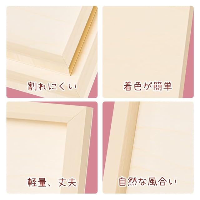 【素材】ウッドキャンバスボードは良質の木材を使用し、細かく均一な風合いがあり、着色や貼り付けが簡単です。キャンバスは相対的に軽くて、掛けやすくて移働して、とても良い装飾効果を持ちます。絵画のキャンバスボードやクレイクラフトの工作にピッタリです。
