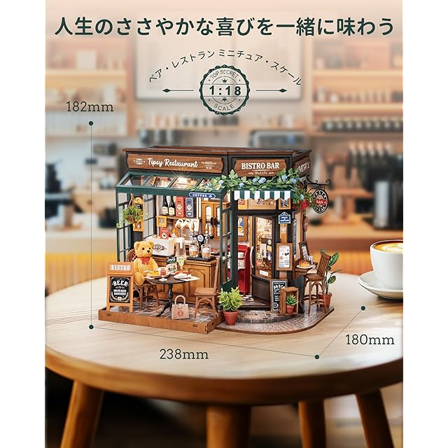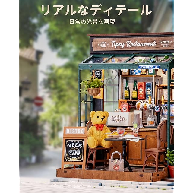 「ミニチュアハウスと癒し」Rolife 3Dパズル「ベア 」市内にあるキュービーズ・ダイニング・バーで、卓越した美学を持つオーナーが、クラシックさとモダンな美学を加えている。 リラックスした雰囲気の中でドリンクを楽しみながら交流できるオープン・バー・エリアと、静かに食事を楽しみたい人に最適な空間を提供する独立したテーブル席がある。 クラシックなクマ人形の要素が加わることで、給仕やおままごとをシミュレートする割り勘料理ゲームなど、シーンがさらに癒しと可愛らしさを増します。 製品組立サイズ:238x180x182mm。
